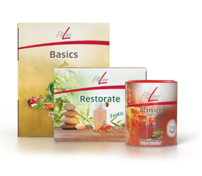 FitLine Optimal-Set сочетает в себе нашу передовую технологию NTC© с аюрведическими традициями и лучшими экстрактами фруктов, овощей, специй и трав, чтобы обеспечить ваш организм питательными веществами, необходимыми для активного дня и спокойного вечера. В набор входят 3 продукта для ежедневного приема: FitLine Basics утром, FitLine Activize Oxyplus для поддержания энергии¹ в течение дня и FitLine Restorate вечером. FitLine Basics: ваш ежедневный напиток для защиты клеток² и иммунной системы³. FitLine Activize Oxyplus: приготовьтесь к новому уровню энергии¹ и сохраняйте концентрацию⁴ для продуктивных дней. Вкус: чёрная смородина. FitLine Restorate: Restorate — идеальный напиток для «спокойной ночи» — содержит высококачественные источники кальция, магния, селена, марганца, хрома и витамина D. ¹Селен, витамин Е и витамин С способствуют защите клеток от окислительного стресса. ²Селен и витамин С способствуют нормальной работе иммунной системы. ³Богат витамином B6 — способствует нормальному энергетическому обмену веществ. ⁴Витамин B6 (пиридоксин), витамин B12 (кобаламин) и витамин C способствуют нормальной работе нервной системы.